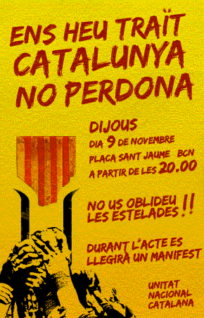 es realitzarà el proper dijous 9 de novembre a les 8 del vespre a la Plaça de Sant Jaume de Barcelona.