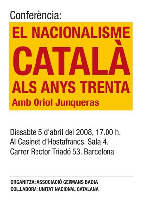 Conferència, El Nacionalisme Català als anys trenta. Amb Oriol Junqueras. 5 d’abril del 2008.